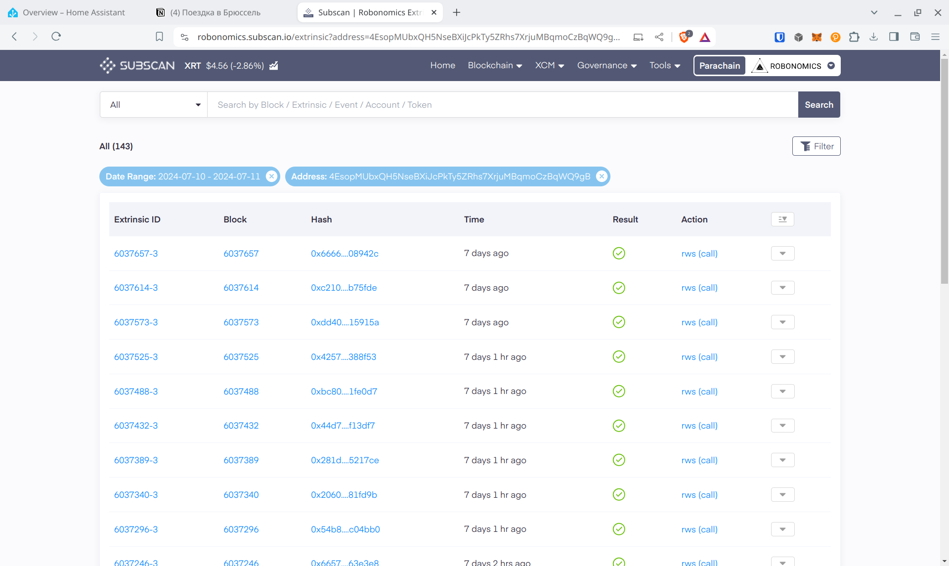 We will see all its extrinsics. Let’s filter them by date. We will get about 140 extrinsics.