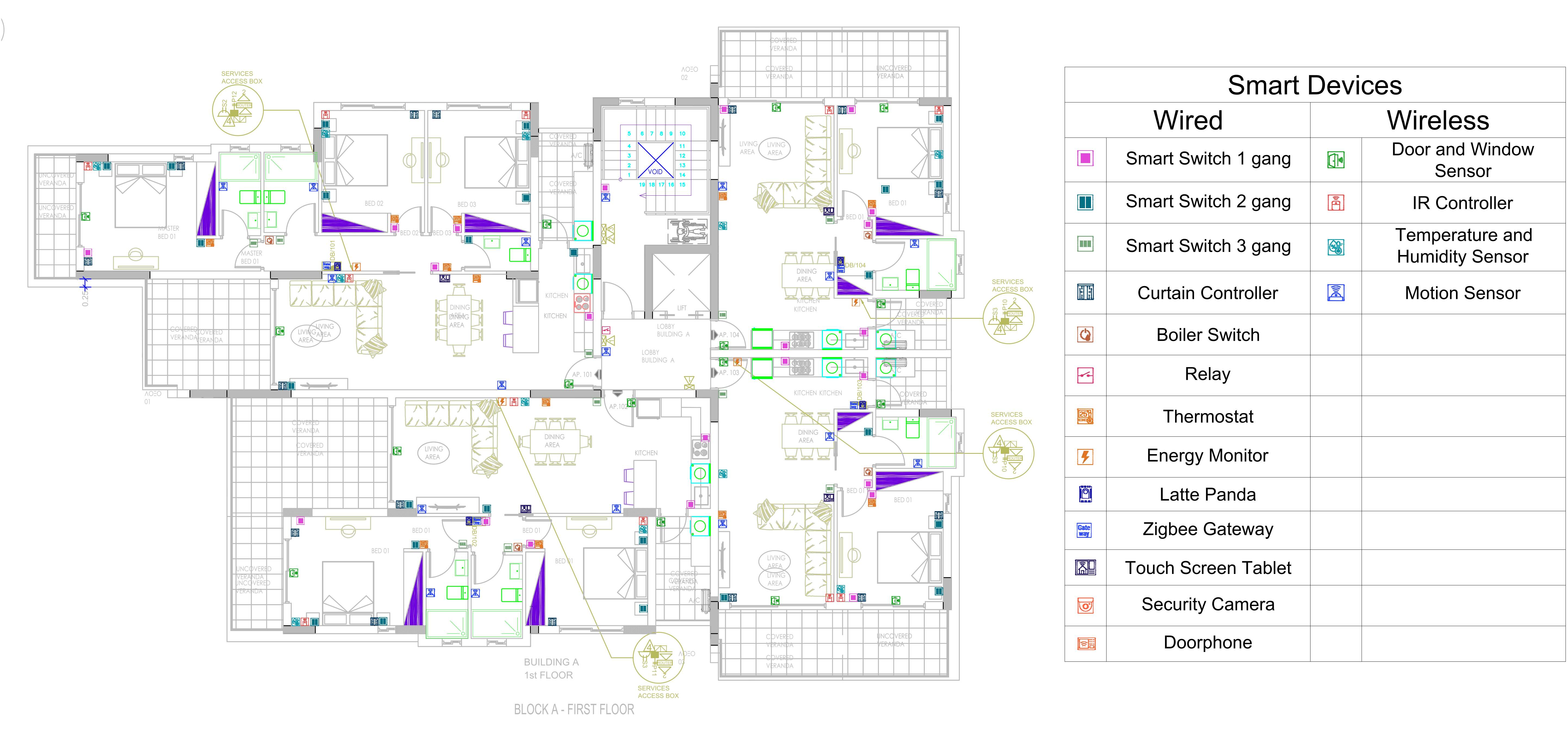 Below is a floor plan of one of the two blocks and a designation legend.