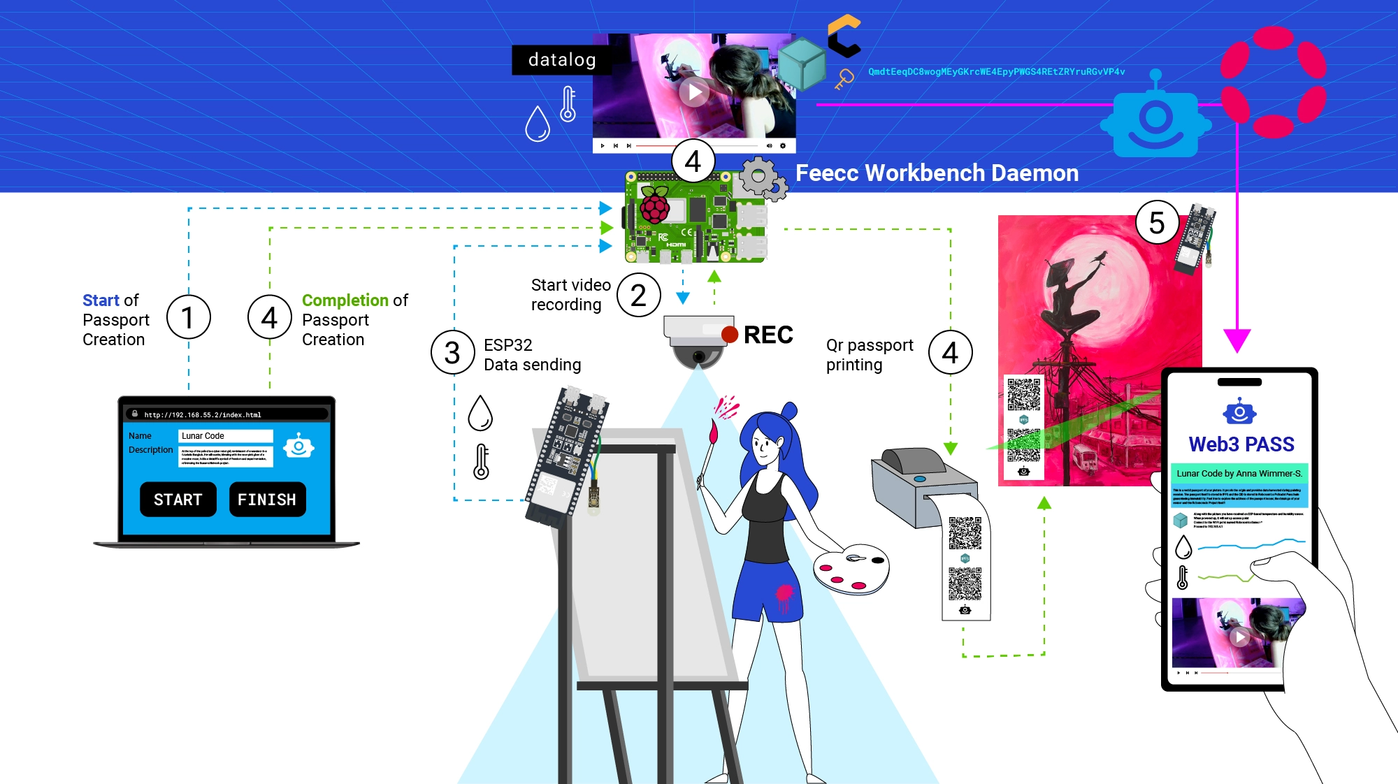 This process demonstrates how IoT and blockchain technologies can integrate into art, creating a transparent and long-term system for documenting creative work.